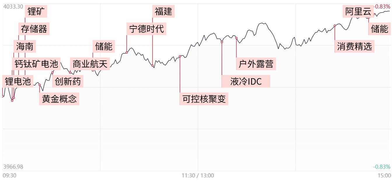 锂电池概念爆发,天赐材料等多股涨停。海峡两岸概念持续走高,厦工股份、中国武夷等股涨停。阿里云概念走强,数据港等涨停。